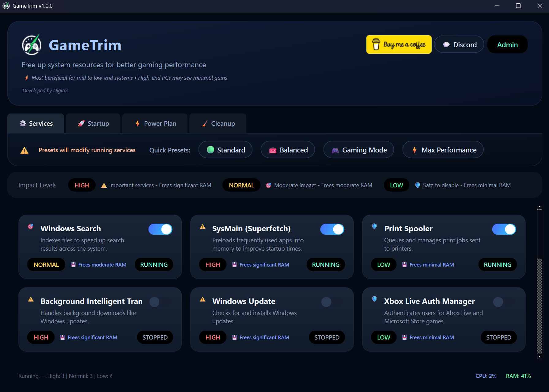 I made this because I was tired of manually stopping services before gaming. Figured others might find it useful too. It's not perfect, but it works for me!